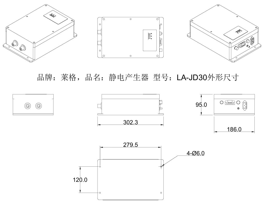 静电发生器LA-JD30。是森莱科公司用于增加静电装置电源之一。此款静电发生器是(LAOGE|莱格)品牌优质产品。采用直流单极输出,输出电压10-30KV可调节输出。产生器在保持输出高压不变情况下使其输出电流更小,从而工作更稳定、寿命更长、更加安全可靠。离子发生器的标配供电电压为AC220V/50Hz。也可选配直流DC24V直流电作为供应电压。静电发生器必需与静电发射器使用(静电发生棒,静电发射头等其它异形头)
